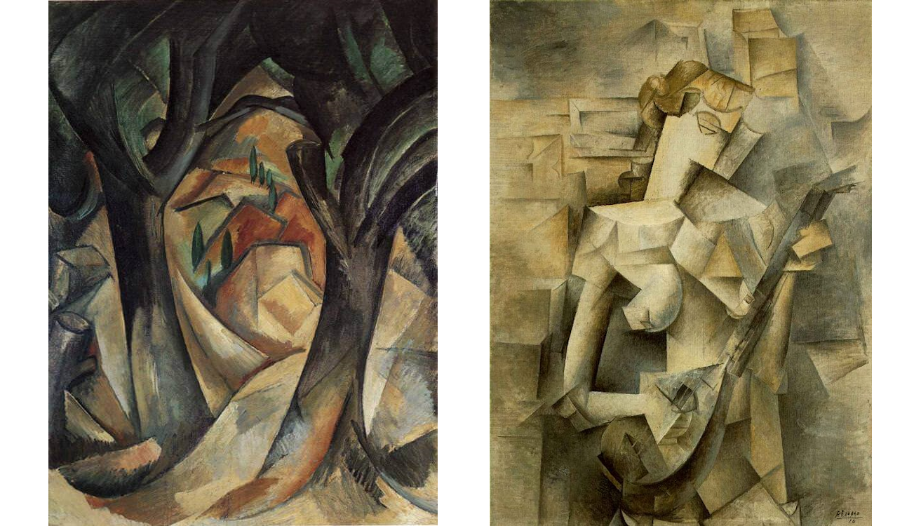 „Дрва во Лестак“, Жорж Брак (1908) и „Девојка со мандолина“, Пабло Пикасо (1910)