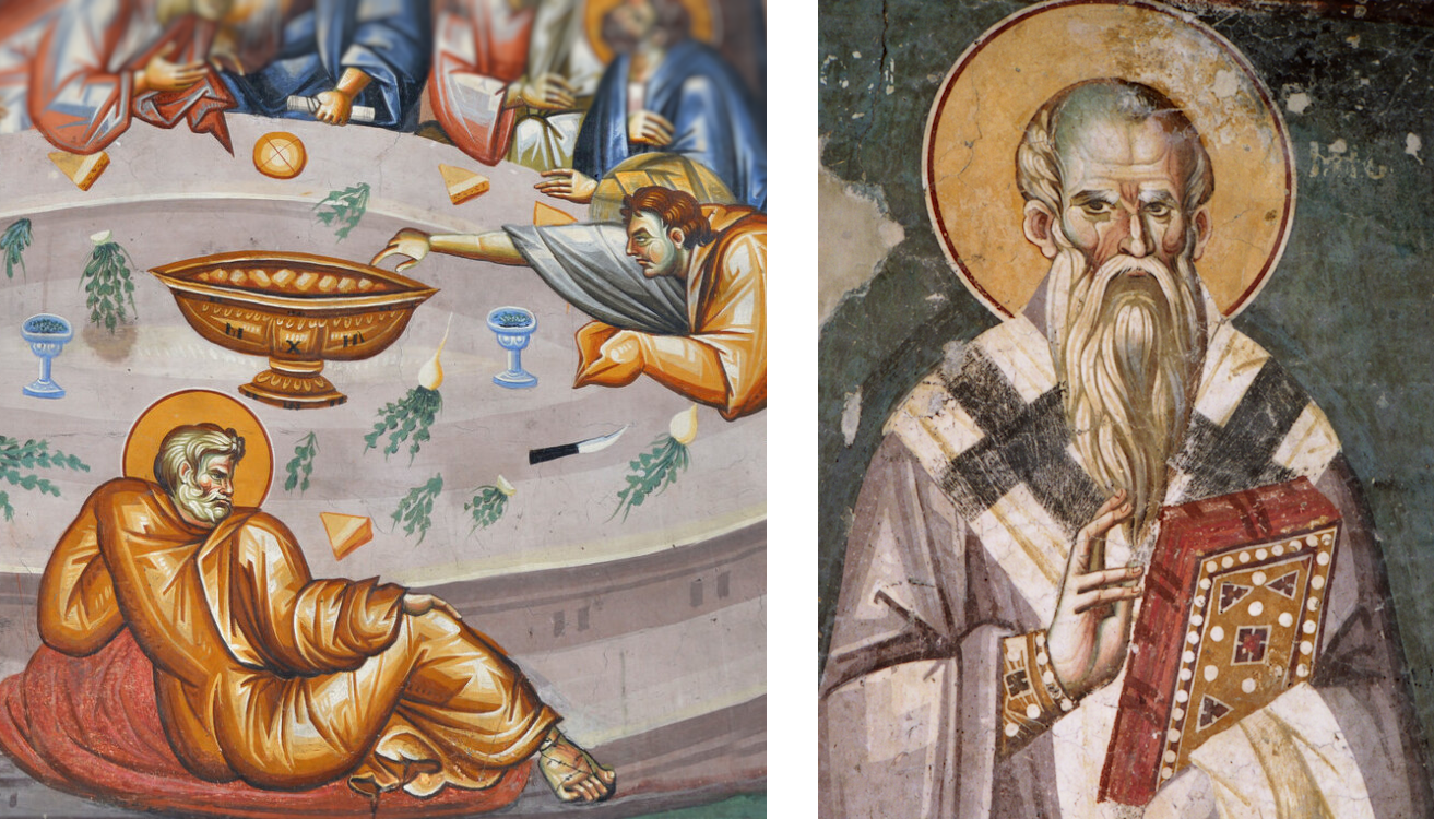Детали од Тајната Вечера и Свети Климент Охридски, Михаил и Евтихиј, 13 век